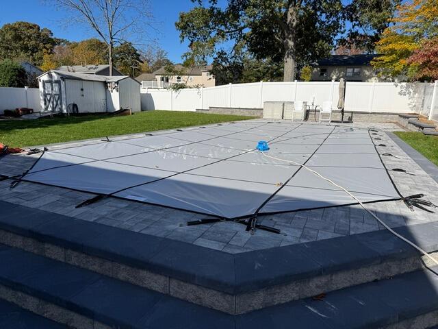 We completed this unique in-ground pool installation in 2025 just in time for the homeowner to enjoy the end of swim season. As temperatures dropped, we helped them select the right safety cover and properly winterized the pool for the colder months ahead.